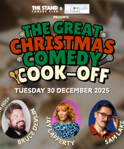 Tuesday 30th December 2025 3PM - 5.00PM ENTCS x The Stand present: The Great Christmas Comedy Cook-Off! Get ready for a festive fusion of food, fun, and utter chaos. Join the brilliantly mischievous Bruce Devlin as he hosts the sassiest cooking show this side of Hogmanay, a holiday event where culinary ambition meets questionable decision-making. And yes, gin will absolutely be available.