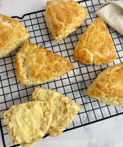 Scones come in many different shapes, sizes and flavours. Whether it is a plain or fruit scone to eat at teatime with jam and butter or clotted cream, or a savoury variety to have with lunch. There is an art to making them that involves a quick light touch and a soft dough. In this masterclass we will explain the science behind making the best scone and we will make three different flavours so by the end of the class you will be a scone wizard! We will pack your scones up to take away with you.