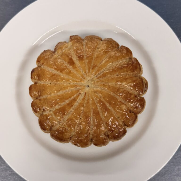 Note: it is tradition to bake a fève (bean) into the tart and whoever gets the bean gets to be the roi (king) for the day. Simply place the bean into the frangipane before adding the top circle of pastry.